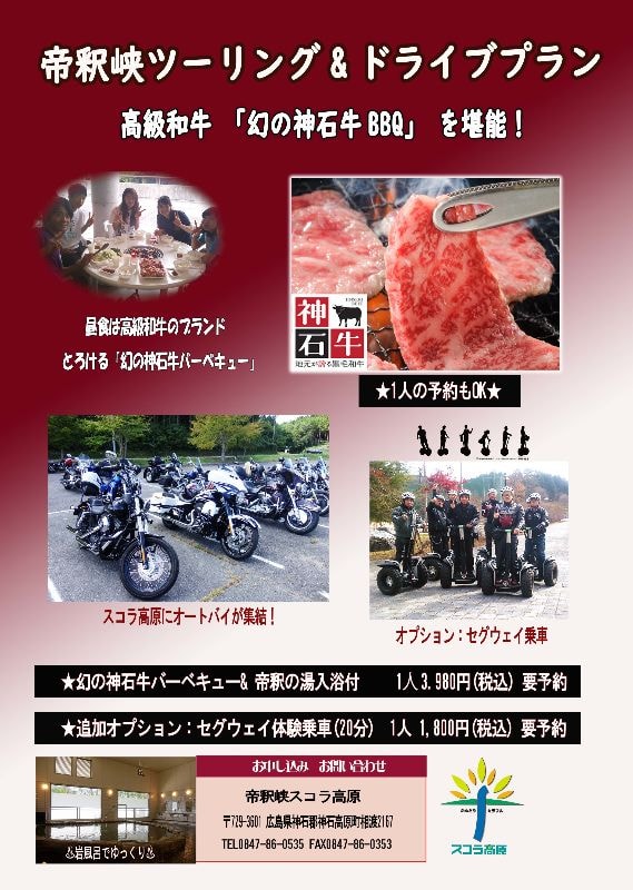 ライダーや車好きの皆さん!ツーリング ドライブで帝釈峡スコラ高原