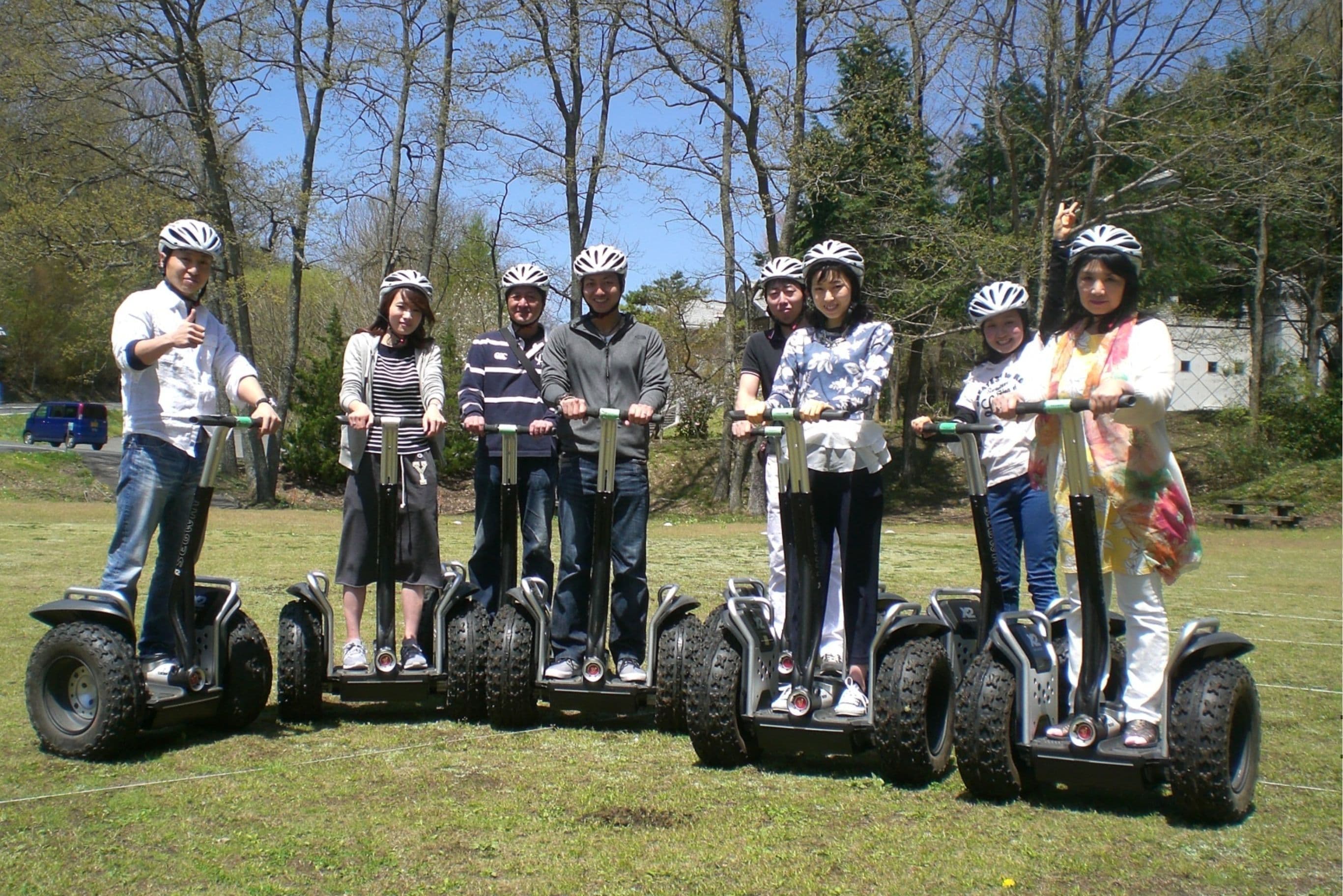 セグウェイは初体験の人でも15分程度で慣れて自在に移動できます。行きたい方向に体を傾けて体重をかけると、速度調節から前後進、方向転換ができる不思議な乗り物です。中四国地方では帝釈峡スコラ高原のみで乗車できます!